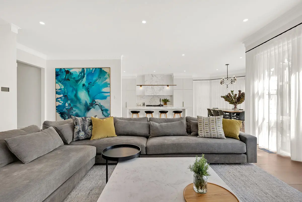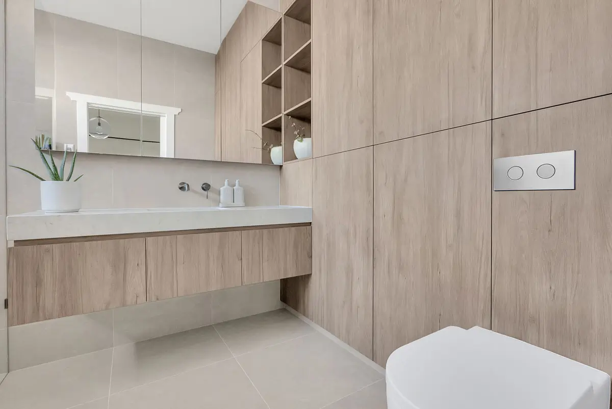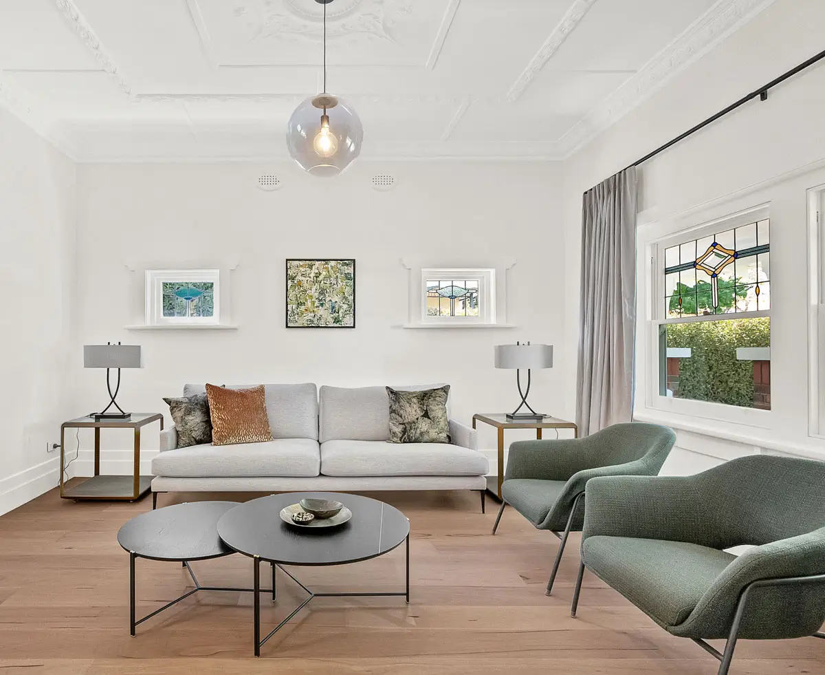 The transformation delivers a cohesive design that feels functional and effortlessly inviting. The entryway was opened up to create a more welcoming and spacious first impression, complemented by new timber flooring throughout the ground floor that unifies each space with natural warmth and flow.