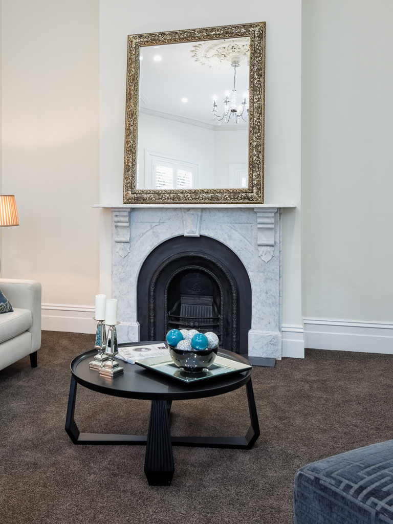 This hallway speaks for itself, white walls that brings out the style of this period home. Bright light comes in from the other side of the home, giving the entrant a welcoming feel.